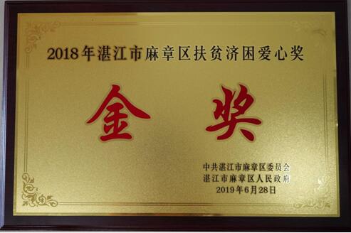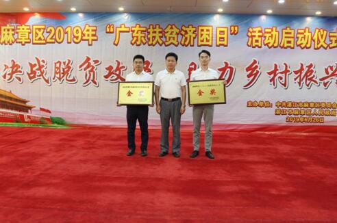 本站訊(通訊員 黃新顏)2019年6月26日下午,湛江市麻章區(qū)2019年“廣東扶貧濟(jì)困日”活動啟動儀式在麻章區(qū)機關(guān)辦公樓11樓8號會議室舉行。麻章區(qū)委符賢書記參加活動并親手為恒興頒發(fā)了“扶貧濟(jì)困愛心金獎”,公司行政人事中心副總經(jīng)理周劍熙代表公司上臺領(lǐng)獎。