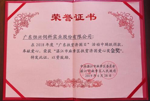 恒興喜獲“扶貧濟(jì)困愛心金獎”