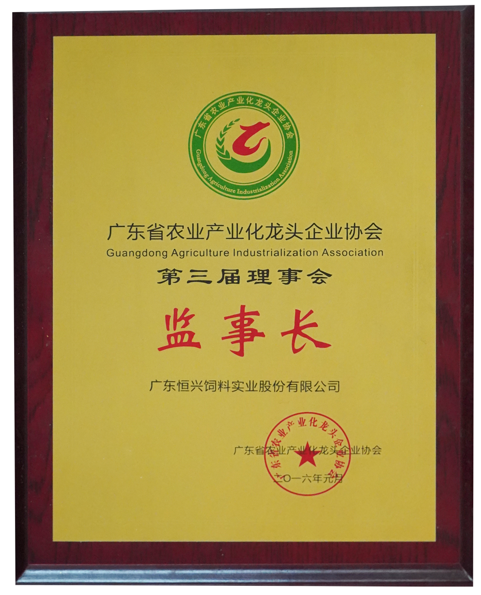 廣東省農(nóng)業(yè)產(chǎn)業(yè)化龍頭企業(yè)協(xié)會(huì) 第三屆理事會(huì) 董事長(zhǎng)(2016年)
