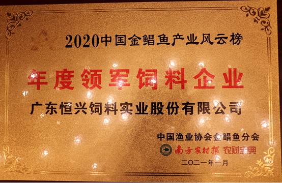 2021年3月20日,由中國(guó)漁業(yè)協(xié)會(huì)金鯧魚(yú)分會(huì)主辦、恒興聯(lián)合承辦的“第二屆中國(guó)金鯧魚(yú)產(chǎn)業(yè)高峰論壇”在湛江盛大召開(kāi),會(huì)議匯聚了行業(yè)專(zhuān)家學(xué)者、優(yōu)秀企業(yè)代表、經(jīng)銷(xiāo)商、養(yǎng)殖戶等600多人,共同為金鯧魚(yú)產(chǎn)業(yè)發(fā)展出謀劃策。在“中國(guó)金鯧魚(yú)產(chǎn)業(yè)風(fēng)云榜頒獎(jiǎng)典禮”上,公司榮獲“年度領(lǐng)軍飼料企業(yè)”、“援鄂抗疫貢獻(xiàn)企業(yè)”兩大獎(jiǎng)項(xiàng)。