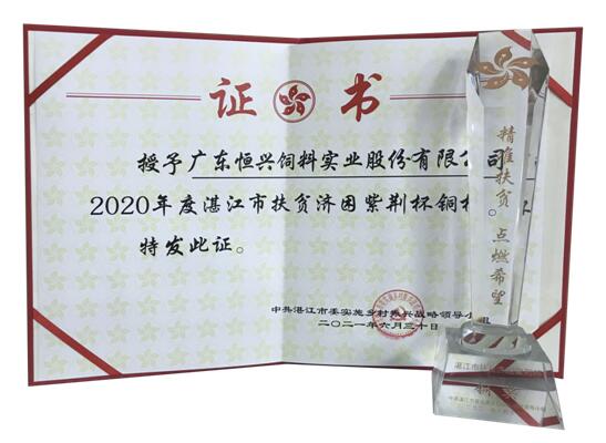 (通訊員黃新顏)2021年6月30日,中共湛江市委實施鄉(xiāng)村振興戰(zhàn)略領導小組對2020年度湛江市扶貧濟困紫荊杯的單位和個人進行表彰,公司憑借一年來在扶貧濟困等公益性事業(yè)中作出的突出貢獻,榮獲了2020年度“湛江市扶貧濟困紫荊杯”銅杯獎及榮譽證書。