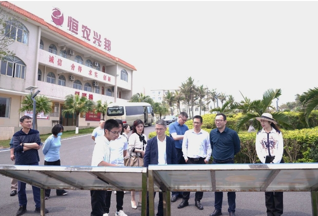 3月28日,廣東省科技廳副廳長梁勤儒一行蒞臨“國家 863 計劃”海水養(yǎng)殖種子工程南方基地(以下簡稱“國家863基地”)考察調(diào)研。湛江市科技局局長趙剛陪同調(diào)研,恒興常務(wù)副總裁張海濤攜相關(guān)業(yè)務(wù)管理人員熱情接待。