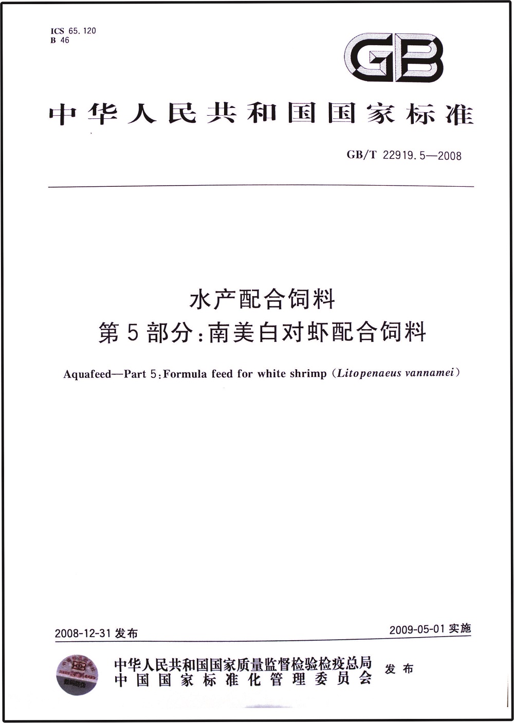 GB/T22919.5-2008南美白對蝦配合飼料;